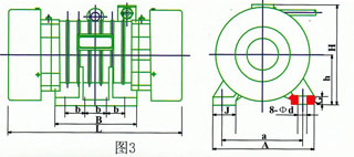 | 型號(hào) | 激振力 KN | 額定功率KW | 額定電流A | 振動(dòng)次數(shù)次/分 | 安裝型式 | L | B | b | A | a | h | H | G | J | d | 圖 |